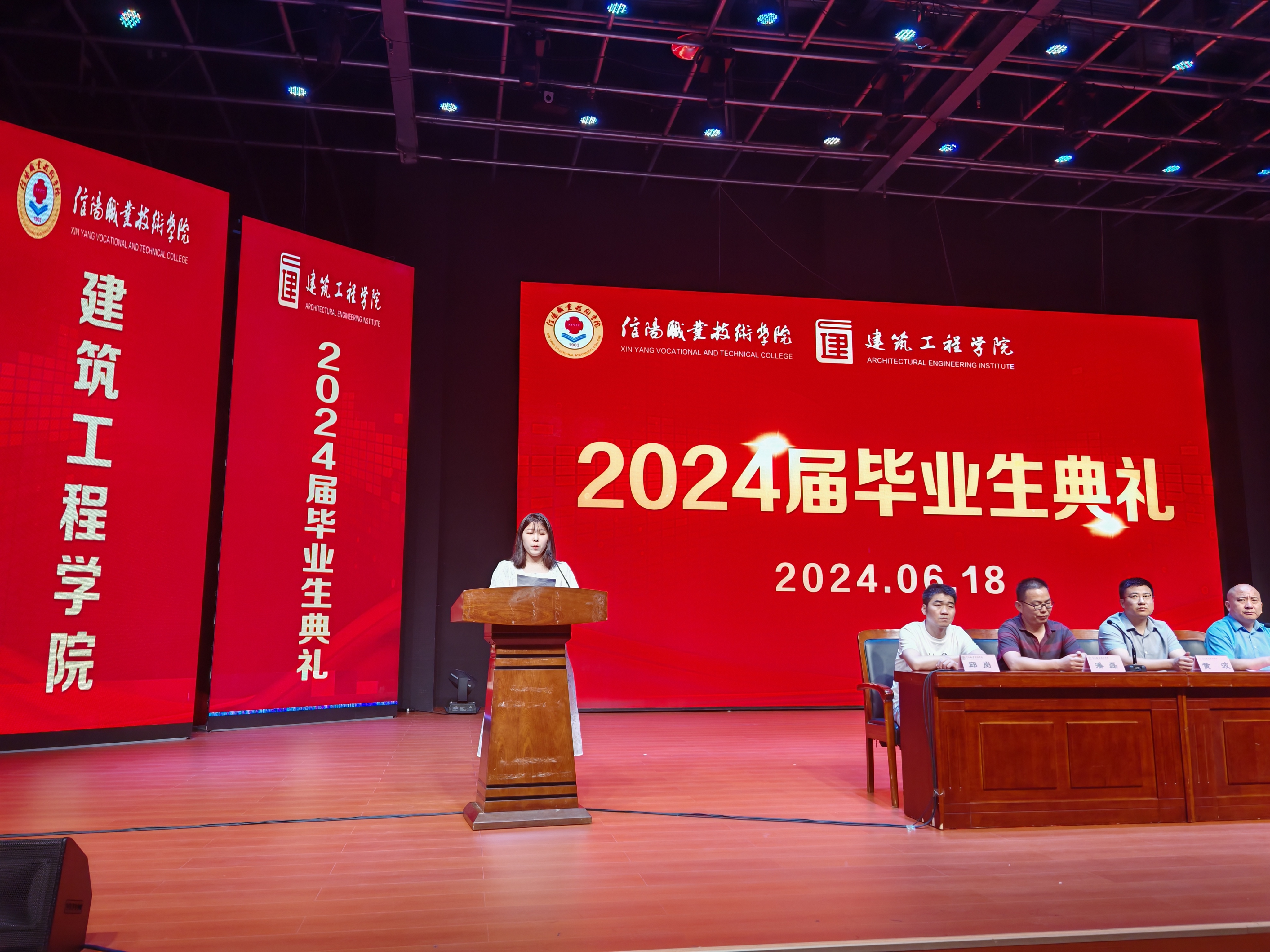 黄新向即将作别的建工专业毕业生们深情寄语。他代表学校向圆满完成学业的419名学生表示祝贺,与毕业生们一起回顾了三年来共同走过的奋斗之路,对毕业生们取得的成绩给予了充分的肯定与赞赏。他希望同学们要矢志报国,勇担时代责任,将个人理想融入国家和民族的事业中;要恪守行规,争做大国工匠,培养精益求精、追求卓越的精神品质;要与时俱进,坚持终身学习,密切关注行业动态,不断提高自身的专业能力;要团结协作,发扬集体精神,营造良好的人际关系和工作环境。最后,黄新祝愿每一位毕业生前程似锦,鹏程万里,未来可期。