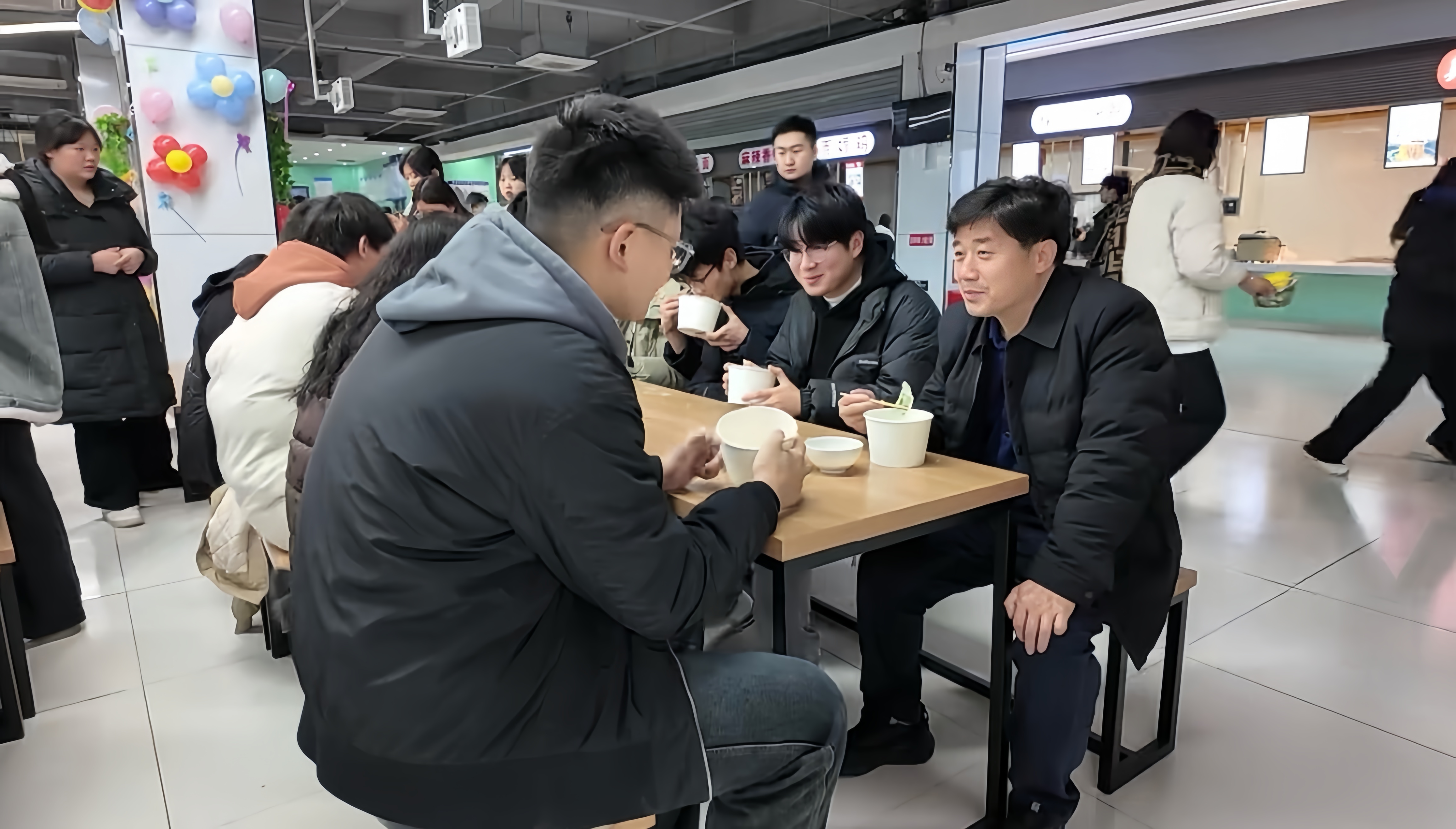 学生在老师的带领下有序入场一时间餐厅内人头攒动、热闹非凡分发饺子皮、分配馅料一切都在紧锣密鼓地有序进行中师生们围坐在一起在欢声笑语中度过了包饺子的温情时刻轻松和谐的氛围如春风拂面驱散了冬日的寒冷