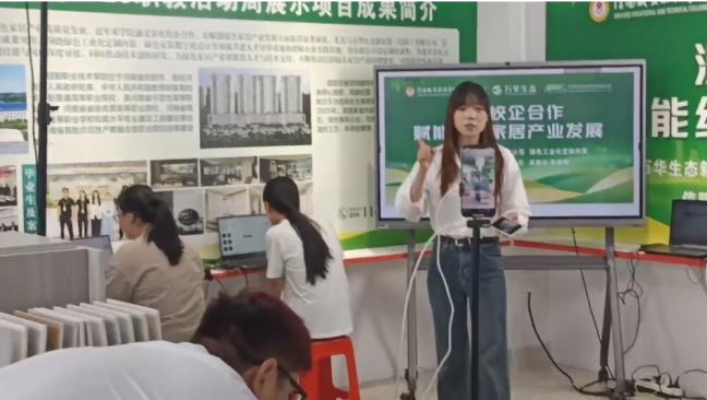 买球官方网站展区邀请了信阳交换空间装饰有限公司和万华生态新家装(信阳)有限公司两家合作企业。万华生态集团展示了家装装配式预制模块及人造生态板材,这些展示内容不仅吸引了众多参观者的目光,也体现了建筑装饰行业的高效、环保发展趋势。信阳交换空间装饰有限公司则将“直播设计工坊”搬至现场,通过直播,企业直观地向观众解析了装修全流程和装修新工艺,让参观者能够近距离了解建筑装饰行业的实际操作过程。这种创新的展示方式不仅展示了企业的实力,也体现了学院与企业深度合作的成果。