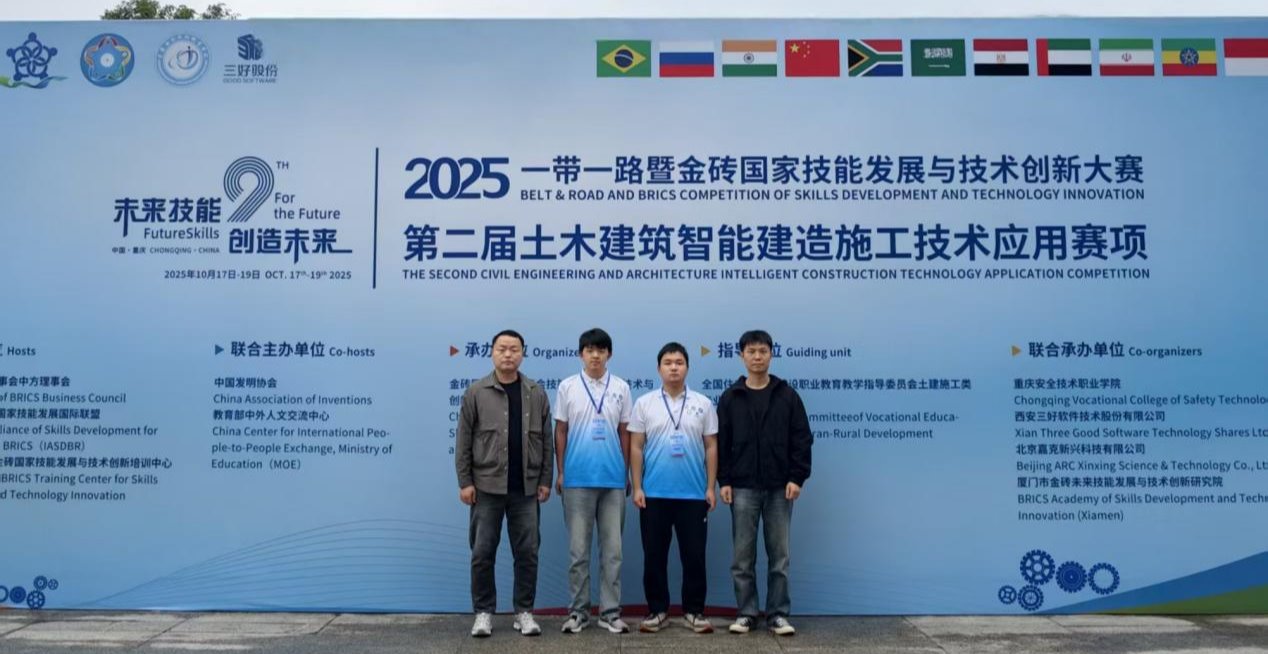 近日,2025“一带一路”暨金砖国家技能发展与技术创新大赛之第二届土木建筑智能建造施工技术应用赛项决赛在重庆安全技术职业学院隆重举行,买球官方网站参赛队伍凭借扎实的专业知识和出色的现场发挥,荣获全国二等奖的优异成绩。