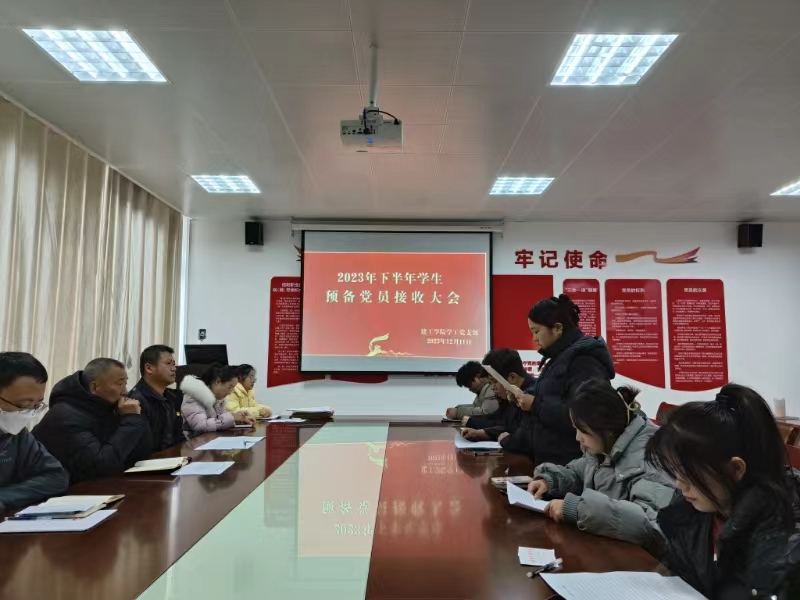 7名学生党员发展对象在大会上做了个人基本情况汇报,表明了入党愿意;入党介绍人就发展对象的日常表现、思想动态等向大会做了说明;与会党员教师展开讨论,并通过无记名投票,一致同意接收7名党员发展对象成为中国共产党预备党员;支部宣传委员丁梦娇带领新入党学生面向党旗进行了庄严宣誓。