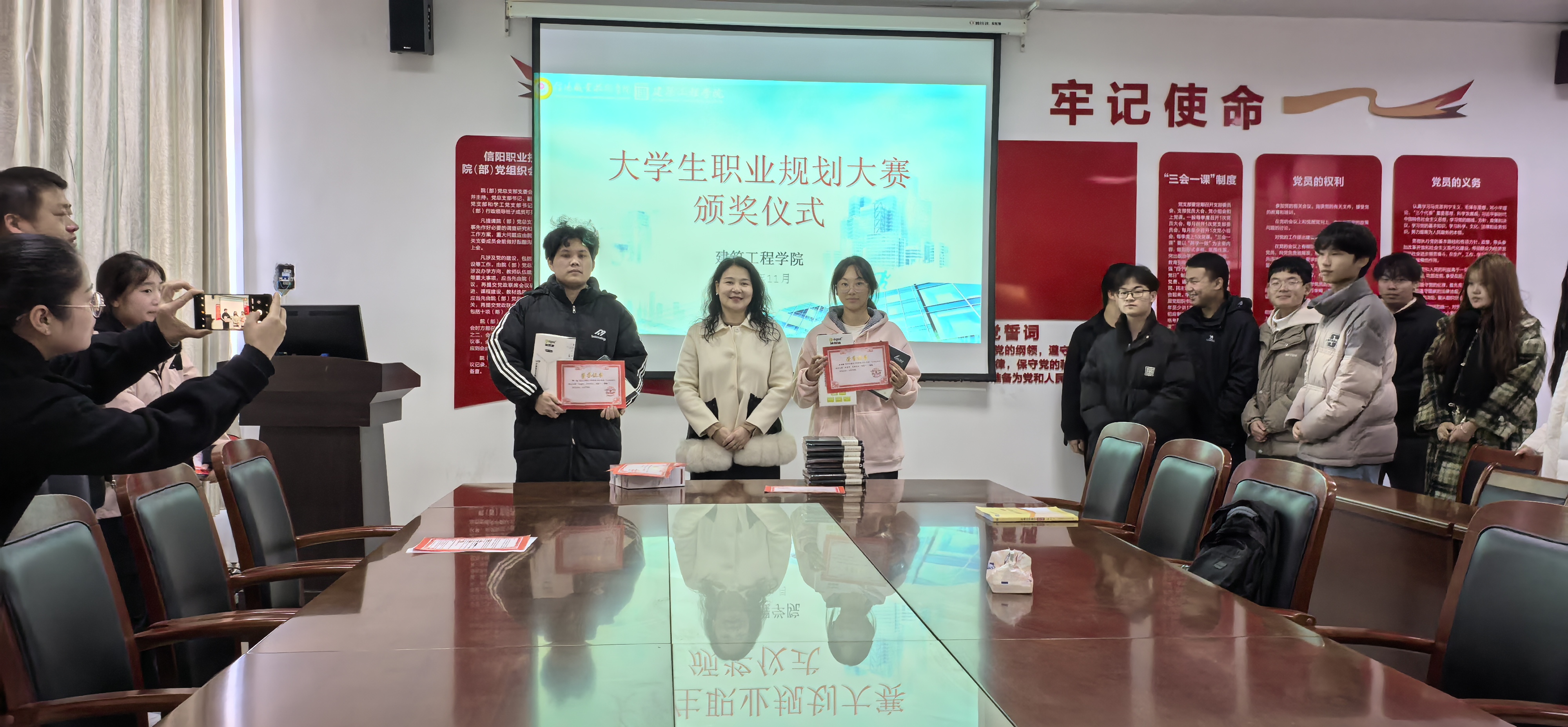 11月20日在3013多媒体会议室举行了大学生职业规划大赛颁奖仪式,仪式上买球官方网站党总支书记刘亚梅对参赛选手和指导老师给予了充分的肯定和鼓励,同时希望广大同学们能够以获奖同学为榜样,积极规划自己的职业生涯,明确自己的职业目标和发展方向。在未来的学习和生活中,不断挑战自我、超越自我,努力成为新时代的优秀建筑人才。